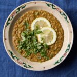 - Half-blend the mixture with a stick blender to give it a creamy texture while keeping some chunks intact. If need be, add more water, and remember to check the salt. Simmer for another 15 minutes, then serve hot garnished with extra coriander and the lemon slices.