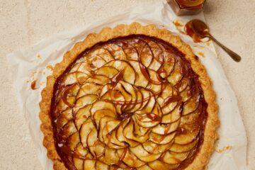 • Bake for 30 minutes, then rotate the tin to ensure an even bake. Cook for a final 25-30 minutes, until the cake is bouncy on top, then remove from the oven. Cool for 10 minutes, then release the sides with a palette knife. Place a flat plate on top of the tin and carefully flip the cake to upturn it (be sure to do this while the cake is still very warm or the figs will stick). Serve with soured cream.